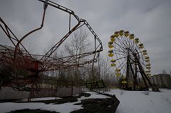 錆び付いた観覧車から子供たちの歓声は二度と聞くことはない。 原発労働者が住んでいたプリピャチ市の遊園地