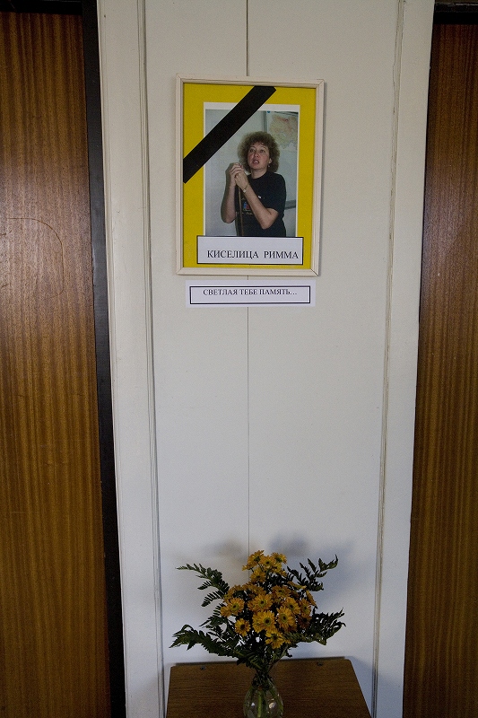 チェルノブイリ原発広報室で働いていたガイドのだったキセリーツァ・リンマさんが亡くなった。 彼女は加藤登紀子さんがプリピャチに来たときに案内をした人だった。 チェルノブイリインフォームには遺影と花が飾られ同僚たちが冥福を祈っていた(2006年4月19日)