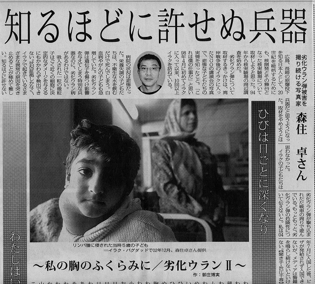 イラクの劣化ウラン弾の被害にインタビュー記事と写真が掲載される