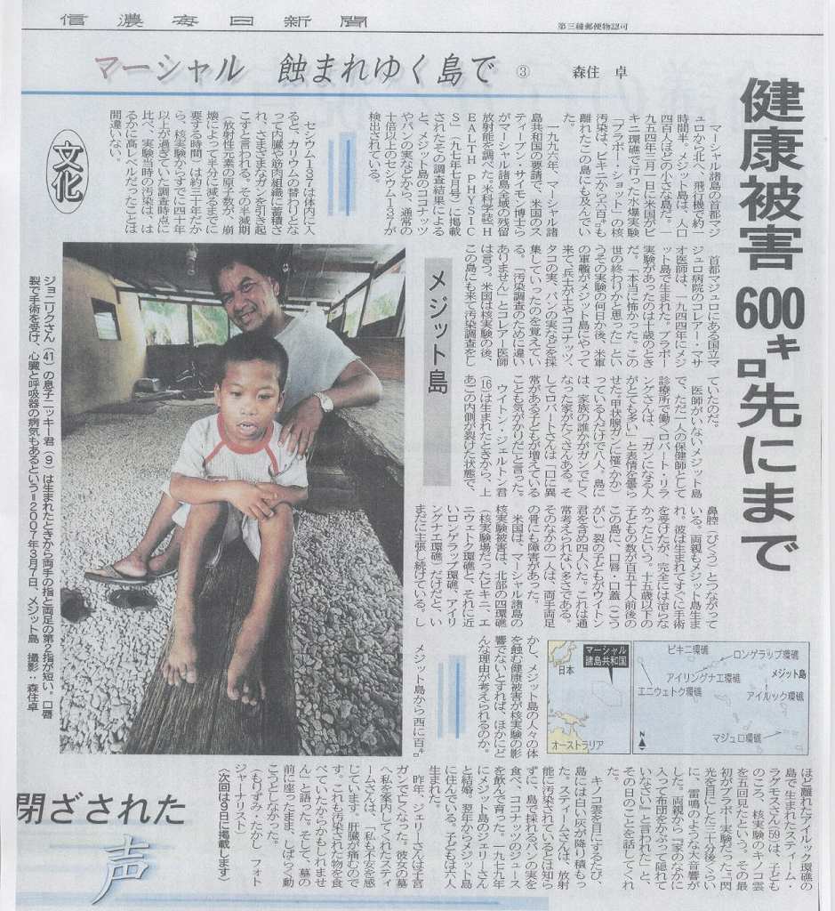 2007年4月26日(木)発売の写真週刊誌 FRIDAY に「マーシャル諸島核実験被害者の怒りと叫び」が掲載されました