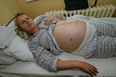 ガンで入院中のラディボイエ・ストヤディンカ(49)さんはレポサヴィツァ村に住んでいた。「1999年の空爆の時、近所の民家が空爆された。2年前に筋肉腫ができ、いまは胃ガンと腎臓ガンで苦しんでいる。失業中の夫と3人の子どもがいる。早く治して働きたい」と力無く言った。