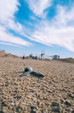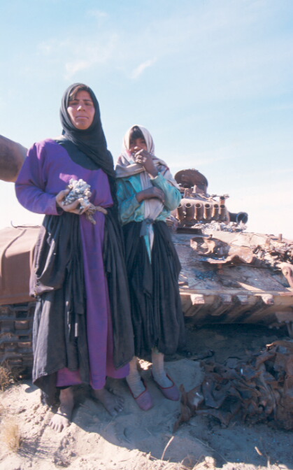 破壊されたイラク軍戦車の部品を取り外す砂漠の民ベドウィン。劣化ウラン弾で汚染されているかも知れない戦車の部品は、町で売る。劣化ウラン弾の事を彼らは知らない。
