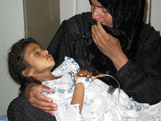 応対してくれたサード・メヘディ・ハッサーニ医師は「どうぞどこでも撮ってください」と、とても好意的に応対してくれた。彼の案内で白血病専門病棟に入院している子どもたちを訪ねた。現在この病棟には40人の子どもが入院している。 6個のベッドのある部屋には4人の子どもと付き添いの母親が一緒にいた。 ゼイナバッドちゃん(4)は母親のひざの上に乗って荒い息をしながら時々、苦しそうにあえいでいる。 額には汗がにじみ出ていた。彼女のか細い腕は、そっと触っただけで折れてしまいそうなほど細かった。 サード・メヘディ・ハッサーニ医師は 「肝臓ガンなんです。今のイラクでは手術もできない。あと半年生きられれば・・・」と言って言葉を濁してしまった。 ゼイナバトちゃんはバグダッドの200キロ南の町ディワニヤからやってきた。 ディワニヤは湾岸戦争当時、米軍の激しい空爆にさらされた町だ。 サード・メヘディ・ハサーニ医師は「劣化ウラン弾の影響でしょう」と言った。 しかし、母親のサヘーダ(30)さんは劣化ウラン弾の危険性について何も知らされていない。 湾岸戦争で初めて使われた劣化ウラン弾は11年後の今もイラクの子どもたちを死の淵に追い込んでいる。 今またアメリカはイラクの大量破壊兵器査察を受け入れをめぐって激しいやり取りがおくなわれていたが、 先日、イラクは査察を受け入れると表明した。イラク攻撃の口実を失ったアメリカはそれすら拒否し、なんとしても攻撃したいらしい。 バグダッド市内のメインストリート、サドゥーンストリートで買い物をしていた市民は