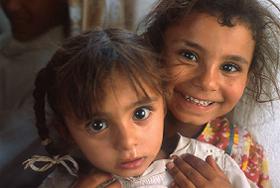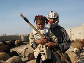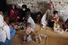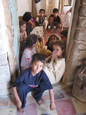 ![]() ムスタファの母と妹と近所の子どもたち |