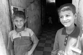 ![]() ムスタファは双子の弟(左)といつも一緒にいる。 |
