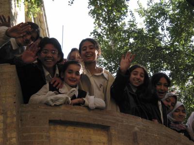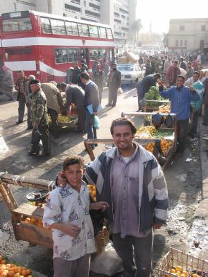 彼女たちに戦争やイラクの国について質問した。 いきなり不躾だったが「サダムフセイン大統領ををどう思うか?」と聞いてみた。 元気の良い答えがあちこちからかえって来た。 イーヴィン・アサダアラー(14)さんは「サダムは私たちのお父さんよ」と即座に屈託無く答えた。 さらに、アメリカの攻撃を前に「今、とても緊張している。私たちはこの戦争に必ず勝つと思う。 サフダム フセインを信じているわ。反対にブッシュは世界を壊す破壊者よ、 非常に汚い人だと思う。犯罪者だわ。なぜそう思うかですって。 なぜなら子どもたちが大嫌いな人だから」と元気な答えが返ってきた。 みな口々に同じような答えを返してきた。 一方、ヘンドゥディア・カミル(14歳)は「アメリカ人はとてもいい人よ。 問題はアメリカ政府よ」と非常に冷静な答えが返ってきた。 引率の先生は子どもたちに自由に自分の意見を述べさせていた。 アラビアンナイトの世界を彷彿とさせるアル・ラシッド通りの歩道にCDレコーダを並べて売っていた青年に出会った。 アリー・ジェリール(20)さんは兵役に就いているが1週間の休暇中で自宅に帰ってきていた。 しかし、彼にゆっくり休暇をタニシ無時間は無い。家計を助けるために町に出てCDを売っている。 「私は軍人だ。アメリカが来たらやっつけるための準備は出来ている。 我々は恐れていない。神を信じているから。 イスラム社会、アラブの国々はわらわれの兄弟だから彼らは我々を助けてくれる」ときっぱり言う。 両親はアメリカが攻めた来たら「戦うべきよ」といつも言われている。 9月末に訪れたバクダッドと表面上は何も変わらないが、市民の中には迫り来る戦争が重苦しくのしかかっているようだ。 イラクでもっとも高級のアル・ラシッドホテルの玄関には「BUSH IS CRIMNAL」 (ブッシュは犯罪者だ)というタイル張りのブッシュ大統領の顔が (湾岸戦争当時の米ブッシュ大統領つまり現ブッシュ大統領の父親)はめ込まれいている。 ホテルに入るお客さんは否応無く皆ブッシュの顔を踏んでゆかなければならない。 これはイラク人のジョークにしてはきついジョークだ。 しかし、これまでアメリカによって受けてきた仕打ちを考えればちょっとしたジョークに過ぎない事がわかる。 いま、多くの外国人ジャーナリストがこのホテルに宿泊している。 世界中では1000人以上の外国人ジャーナリストが入国のためのビザの発給を待っているという。 いま、世界の熱い目がイラクに注がれている。 |