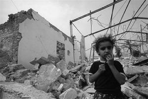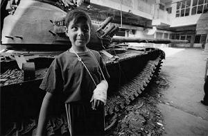 病院は前回(戦争が始まって1週間)行ったアル・キンディー病院やサダム小児病院は略奪に遭い、 ほとんど機能停止という状況だ。 市民同士の銃撃戦で昼間でも危険な状態だった。 医師は安全に病院に通うことができず、医師の不足は病院の機能を停止させざるを得なかった。 サダム病院では、遺体安置室の冷凍庫が停電で使えないため、 亡くなった患者の遺体は裏庭に急ごしらえの穴が掘られ埋葬されていた。 占領支配した米軍は占領軍の義務として、市民の安全を確保義務があるのに、まったく安全確保のために動いていなかった。 医師たちは「今、最も必要なのは安全確保だ。患者や医師が安全に病院に来ることができない」 とどの病院に行っても医師たちは悲痛な声をあげていた。 しかし、私の宿泊していたホテルの近くのクリスチャン系の病院は米軍が警備に当たり、安全が確保されていた。 赤新月社系の病院は暴徒にやりたい放題やらせ、病院を破壊させていた。 米軍は政府官庁の略奪を放置しておきながら、石油省の建物はがっちりガードしていた。 《サードくんの家》 4月17日、旧サダムシティー(現在はアル・サドールに変更された)に住むサードくんの家を訪ねた。 戦争が始まって近く爆弾がたくさん落ちるようになり、4日目にバグダッドの50キロ北の村の親戚の家に避難した。 2日前に避難先から帰ってきたばかりだと言っていた。 鉄製の扉を開けて中にはいると、庭がゴミだらけで、気の葉やゴミが散らかっていた。 サードのお母さんと姉のメースンが庭の掃き掃除をしていた。 家の入り口には真新しい大きなバッテリーが置かれていた。 「これはどうしたの」とサードに訪ねると、隣にいた母親が「そんな質問するな」と怒っていた。 サードか兄のムハンメッドが略奪してきた物かも知れない。 1月に訪ねたとき兄のムハンメッドは、兵役中で北部のモースルの部隊に行っていると言っていたが、 ムハンメッドは家族と一緒にいた。 彼は戦争の始まる3月、休暇中で家に帰っていた。 ところが3月20日に戦争が始まり、北のモースルの部隊に戻ることができず、 そのまま家族とともに疎開してしまってのだ。 お父さんのジュブーリと弟のアホメッドは家を守るため、疎開しなかった。 「米軍に出ていってもらいたい、アメリカが作った政府を我々はいらない。 自由な選挙をやって国民が政府を作る。 しかし、米軍がいる間は公正な選挙は出来ない」とお父さんのジュブーリはいう。 近くで銃声の音がした。これは祝砲で行っているのだという。 お父さんのジュブーリが俺も持っていると言って、カラシニコフ銃を持ってきた。 弾倉を台所の棚から持ってきて、メースンのポケットに入っていた空砲を2発弾倉に詰めた。 子どもたちがいる庭に出て銃を空に向け発射した。真っ青な空に銃声がとどろき、隣の家の伝書鳩が驚いて一斉に飛び立った。 側で見ていたサードが「俺も撃ちたい」というと即座におまえはダメだ、と言って姉のメースンに渡した。 彼女は銃の訓練を14歳になったので受けていた。多くの市民が銃で武装している、このことが治安を一層悪くしている。 本来、治安確保のために占領軍はまず住民の武装解除しなければ、安全を確保できないのに、それをサボタージュしている。