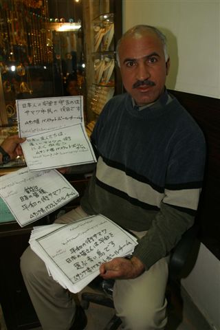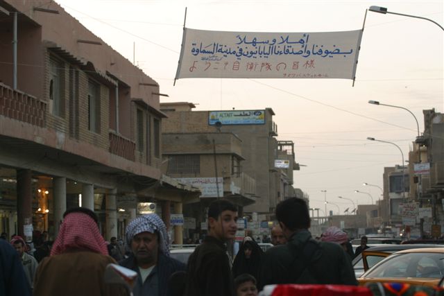 彼は日本語で歓迎の意志表示をしたいと私にも日本語で書いて欲しいと、横断幕用の白い布地を持ってきた。 それに対し「私はジャーナリストであり、書くことはしない。 日本国内で日本軍の派兵は反対の声が強い。 日本国憲法は戦争の放棄と非武装を明記している。 日本軍は憲法違反の存在で外国に出て行くことはできない。 アメリカの強い要請で軍隊を派遣しようとしている。 戦前、日本はアジアの国々を侵略し、広島長崎に原爆が投下され、 多くの犠牲をはらって、平和憲法を作った」と説明すると、アンマール・モーセンさんは納得してくれた。 誤訳をしたジャーナリストは、私の雇っている通訳、ワリード氏とともに一ヶ月ほど前にサマワに来た。 ワリード氏の話によれば、アラビア語から英語に訳してその後日本語に訳されたという。 しかし、ワリード氏の訳は wellcome Japanese armyではなく well come Japanese people と訳したと言っているのだ。 もし、これが自作自演であれば、ジャーナリストとしての資質と信頼を失うことになる。 そればかりか、この横断幕を最も喜んだ人は誰を隠そう、自衛隊派兵をごり押ししている、小泉内閣に他ならない。 12月11日、テレビ朝日の朝のワイドショーで、 自民党の平沢勝栄氏が「自衛隊を歓迎する横断幕があるじゃないか。自衛隊派兵に地元民が こんなに歓迎してくれているのになぜ反対するのか」と言わんばかりだった。 一つの映像が一人歩きし、日本の世論を誘導する意図すら臭ってくる。 共同通信は次の内容を配信した。 ■「自衛隊歓迎」横断幕は自作 日本ジャーナリストが加筆【サマワ(イラク南部)12日共同】
