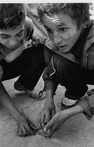 ビー玉遊びをしているところは日本の子どもたちと同じだ。