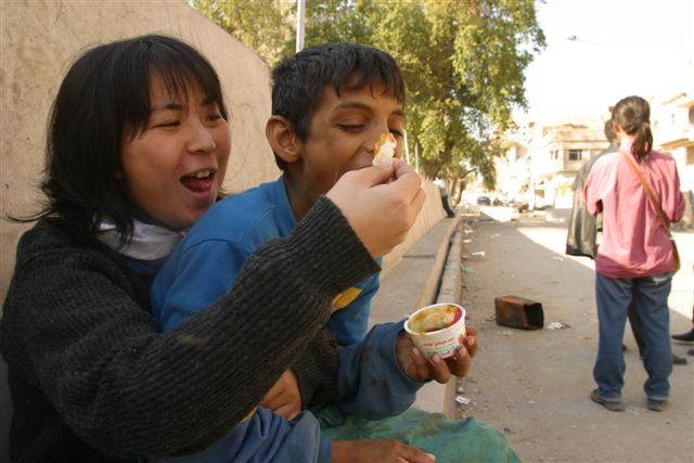 ストリートチルドレンのケアをしている高遠菜穂子さん。