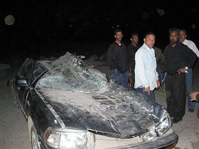 イスラム教シーア派の新聞の一つアル・ハウザが発行禁止になって一週間。 連日、抗議の行動が行われていたが、ナジャフではついに死者も出た。 バグダッド・サドルシティーでは米軍が戦車やアパッチヘリを動員し、住民と衝突が続いていた。  4月4日夜9時近くにサドルシティーにはいると、 シーア派のムクタダ事務所を中心に米軍が銃撃したあとが残っていた。暗くて全体の状況はわからない。 戦車に轢かれた車を撮っていると闇の中から5両の米軍戦車が轟音をあげながら迫ってきた。 住民は「アメリカンタンク」と叫びながら蜘蛛の子を散らすように逃げ出した。 住民に誘導しても立って民家に逃げ込んだ。 しかし、タクシーに残して置いたカメラバッグが心配なので危険を承知で外に出た。 戦車の砲身が反対側に向いたのを見計らって、闇に紛れて逃げたが、米軍は暗視ゴーグルをつけている。 闇の中でも見られていると思うと背筋が凍るようだった。 途中ドブの中に足を突っ込んだ途端、悪臭が鼻を突いた。しかし、そんなこと気にしていられなかった。 500メートルほど走って後ろを振り向くと銃撃の光跡が幾筋も見えた。 遠くで戦車からの砲撃の音も聞こえてきた。死者、けが人の情報はわからなかった。