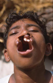 村の医師アナディ・ランジャンさん(35)は「15年ほど前から増え始めた。村には約400人(0〜15才)の子どもがいるが先天異常は12例ある。その他に、 子どもたちは貧血や様々な病気になっている、みな放射能のせいだ」という。 UCILは住民の健康異常は「ウラン鉱山と関係ない」と主張しているが、 ビハール州環境委員会はジャドゴダの環境汚染について「先天性疾患や皮膚以上、 不妊症の原因が放射線の影響であることは明らかだ、 会社側の事実否定には納得できない」と報告(1998年)している。 | |||||||||