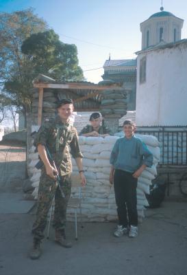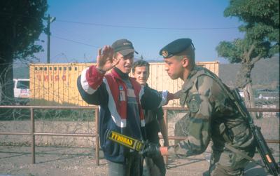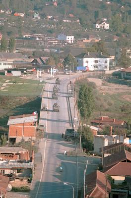 ベオグラードから長距離バスで6時間。紅葉の始まった山岳地帯がコソボの入り口にあたる州境だ。国連平和維持軍(KFOR)のベルギー軍が検問をしていた。 バスの中に銃を持った兵士が乗り込み、パスポートをチェックした。 乗客が私にカメラを仕舞えと言う。 バスの中はセルビア人ばかり、KFORは彼らにとって侵略者なのだ。 だがアルバニア人とっては解放軍に見えるかも知れない。確かにコソボは本来ユーゴスラビアの一自治州、外国軍隊が駐留する国際的根拠はなにもない。 NATO軍の圧倒的な軍事力の前に制圧されたコソボは、民族的亀裂が深まっただけでなにも解決していなかった。 国連平和維持軍が進駐後一年半、コソボの人口の圧倒的多数を占めるようになったアルバニア人はコソボの独立を主張している。 コソボ北部の町ミトロビッツァは東西に流がれるイバル川を挟んで民族が分断されてしまった。 南側にアルバニア人、北側にセルビア人が住み分けられ二つを結ぶ橋はフランス軍が警備に当たり二つの民族が接しないようにしている。 現在人口は推定アルバニア人8万人、セルビア人1万6千人といわれている。