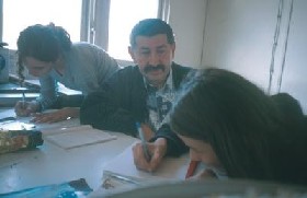 学校から帰ってきた子どもたちは、 元教師だったミラン・プンパロビッチさんから 勉強を教えてもらっている。 |