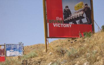 途中のハイウエーには「the DIVINE VICTORY」と書かれた大きなヒズボラのスローガンがあちこちに掲げられていた。