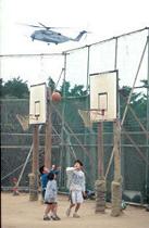 航空機の飛行騒音は子どもたちの精神的安定を奪ってしまう。 (普天間基地) |