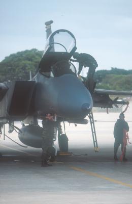 F15戦闘機の出撃準備をする地上クルー (嘉手納基地) |