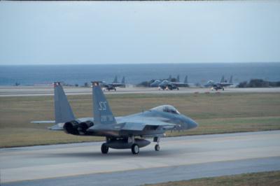 訓練に飛び立つF15戦闘機 (嘉手納基地) |