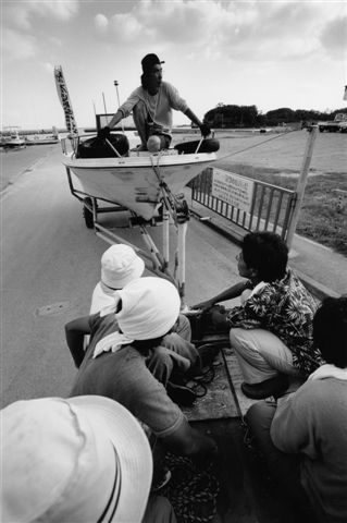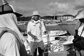 抗議船出港前の乗組員打ち合わせ (辺野古漁港 2004年9月15日) |