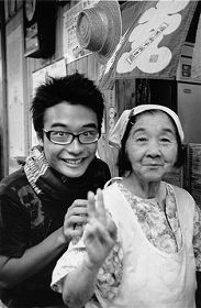 命を守る会の事務局員冨田晋くんの行きつけの「八重そば」のオバア。ここのそばはとてもうまい。