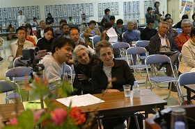 ハインズ助教授、日本自然保護協会の吉田正人理事、沖縄ジュゴンアセスメント監視団長の東恩納琢磨さん (2005年1月29日名護市瀬嵩)