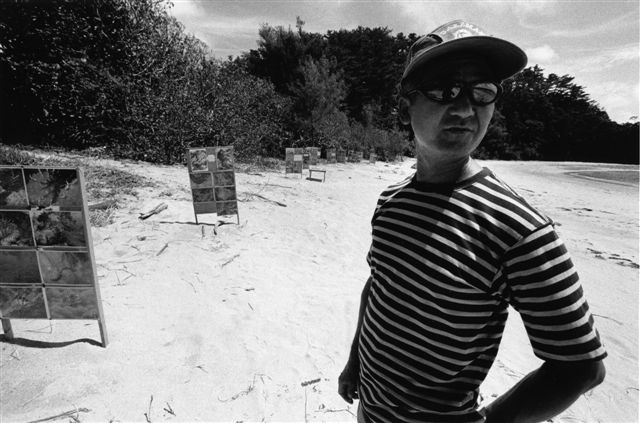 このすばらしい大浦湾の自然を残したいと、自分で撮影した水中写真を瀬嵩(セダケ)浜に展示している。