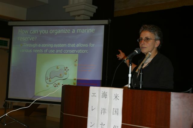 ジュゴン研究の第一人者、サンフランシスコ州立大学のエレン・ハインズ助教授を招いて開かれたジュゴン・シンポジウム