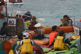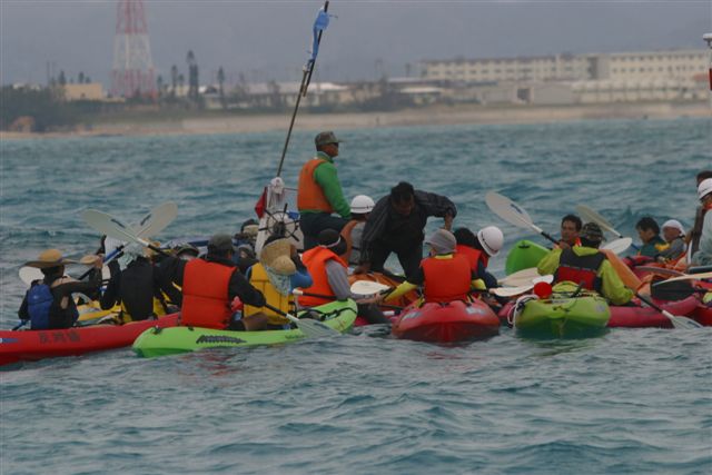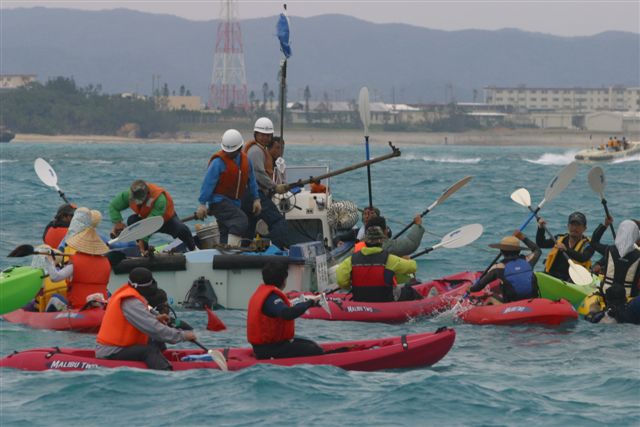 11月17日辺野古沖では本格的に櫓を組む作業を始めようとしたが、反対の人々に