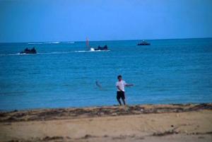 美しい砂浜が、鉄条網で仕切られ、 金網の中は治外法権だ。