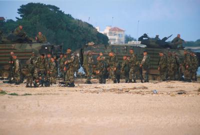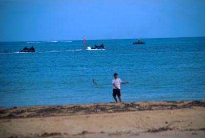 沖には水陸両用戦闘車が走り回っていた。 浅瀬のさんご礁はキャタピラーで粉々に砕けれてしまう。 |