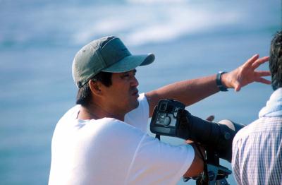 突然、砂浜に姿を現した水陸両用戦闘車。 夕暮れとともに、沖合いに水しぶきを上げながら消えていった。