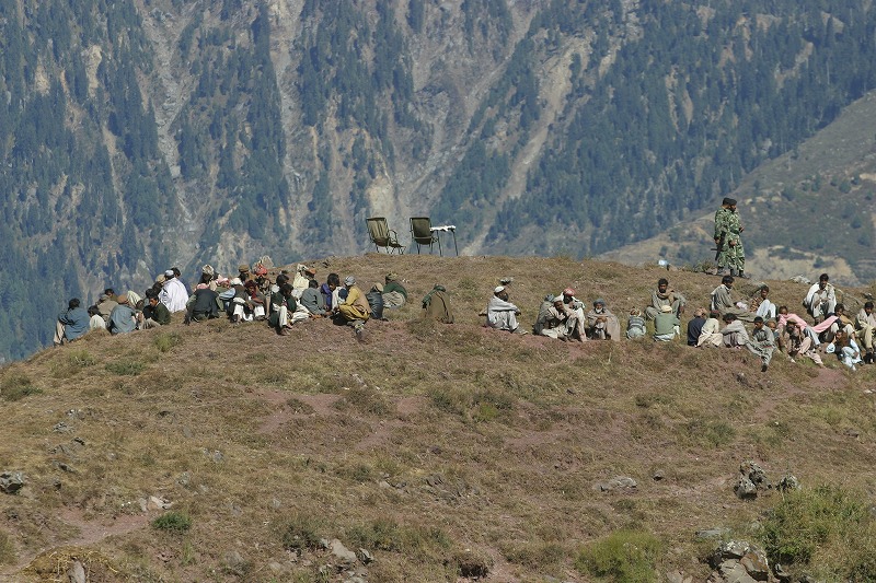 バラコットに向かうハングライの村人(2005年10月20日) |