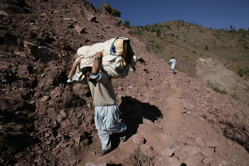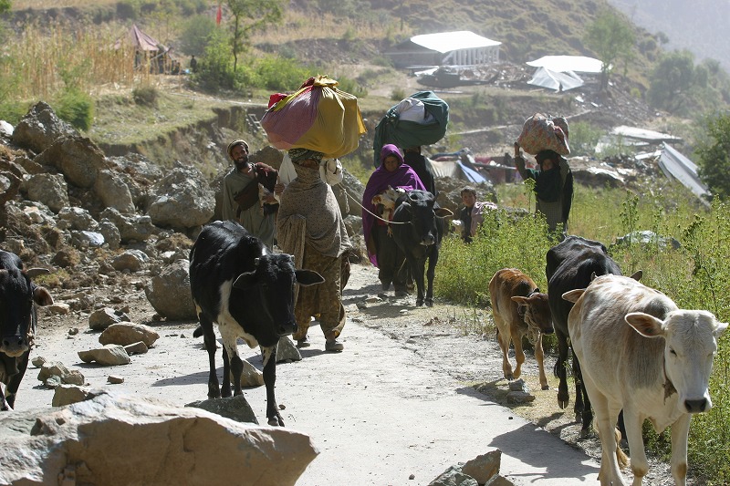 バラコットに向かうハングライの村人(2005年10月19日)