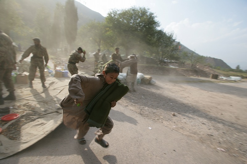 10月25日、カシミール奥地に入った。ラワルピンディーの空軍基地から救援物資を運ぶ米軍ヘリに乗せてくれると言う。ただし行き先はその時になってみなければわからない、村に降りことは出来ない。という条件で乗せてもらった。到着した村で救援物資を降ろしている間に、ここに留まっても良いが次の便はいつ来るかわからないと言う条件でヘリを降りてしまった。無情なヘリはすさまじい埃を巻き上げながらイスラマバード方面に飛び去っていった。
