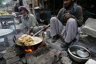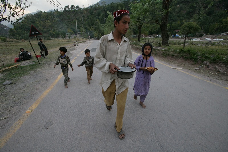 母親が死に、父親はケガをして歩けないため子どもたちがパキスタン軍から食料をもらっていた(10月25日) |