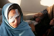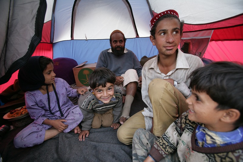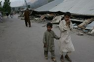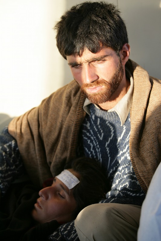 この村もほぼ全壊。負傷者はほとんどイスラマバードやムザファラバードに運ばれていたが、時々遠くの村からヘリで搬送するために負傷者が運ばれてくる。孤立した山奥の村に入った軍が、応急処置して、置いていった患者たちだ。すでに20日近く放置され衰弱しきっていた。モハンメッド・ヤシン(32)さんは畑仕事中に地震に遭い、崖崩れで落ちてきた岩が左足に当たり、動けなくなってしまいそのまま、3日後に村人に発見され救助された。弟の妻と義理の兄が死んだ。担架代わりの簡易ベッドに横たわっているモハンメドさんの側には心配そうに付き添っていている家族の姿があった。妻は負傷した夫の手を握りしめてあげることしかできなかった。