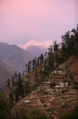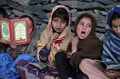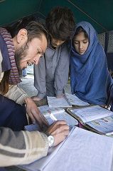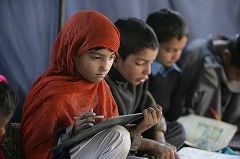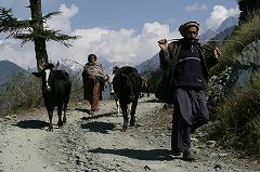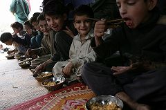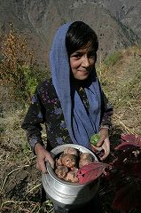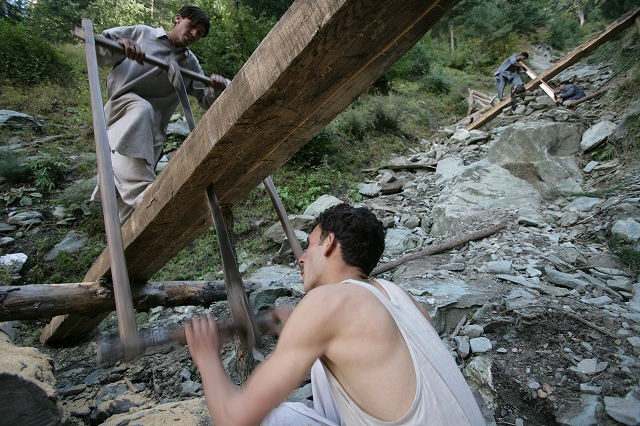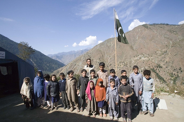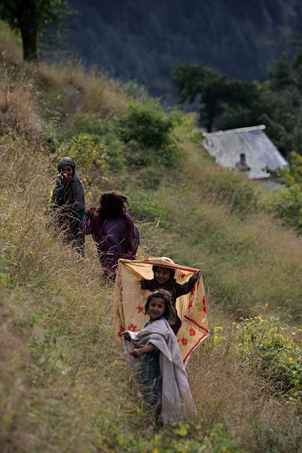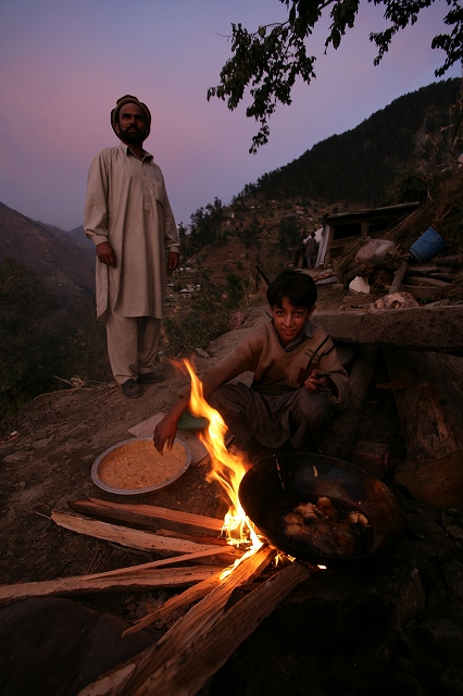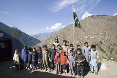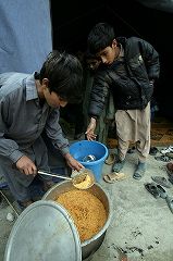私は10月中旬その村を訪ねた。バラコットからジープで2時間半、急峻な山道を走ると、ヌーリー村の入り口のファリダバード似ついた。ここからは崩れた山道を直したばかりの細い山道を慎重に走ってゆく。途中、住民が崩れた道を直していた。急峻なために地震ではなくても雨が降ればすぐ崩れてしまう。 ファリダバードの地図 ファリタバードから20分、ヌーリー村に着いた。急斜面にへばりつくように住居が点在したヌーリー村は人口およそ2000人の村だ。 大げさに言えば、24時間斜面でバランスをとるために緊張していなければ、谷底に転げ落ちてしまうような感じの村だ。 それでも、わずかな平地を利用して崩壊した後の民家にバラックが建っていた。 同協会はここに小学校を開設していた。 子どもたちは常時40人前後。カリド・メハムード先生は4キロ先から歩いて通ってきた。一つ谷を越えた所に公立の小学校があるが、遠くて通いきれない子どもたちの為に開設された。 地震で両親や兄弟を失った子どもが何人もいた。 村の人たちは自分たちの学校を建設するために山に木を切り出しに行っていた。 週に2回昼の給食が出た。テント教室の隣のサイードさん(50)が作ってくれる。子ども達は楽しみにしている。今日はカレー味のピラフだった。具は何も入っていなかった。でも子ども達はおいしそう食べていた。 |