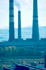 内側に大小さまざまな煙突やススで汚れた工場の建物が見えた。