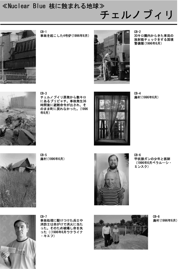 → 20年目のチェルノブイリ Nuclear Blue 核に蝕まれる地球展示写真サムネール インド・ジャドゴダ アメリカ マーシャル諸島 ロシア・チェリャビンスク チェルノブィリ 20年目のチェルノブイリ イラク カザフスタン・セミパラチンスク 旧ユーゴスラビア 福島